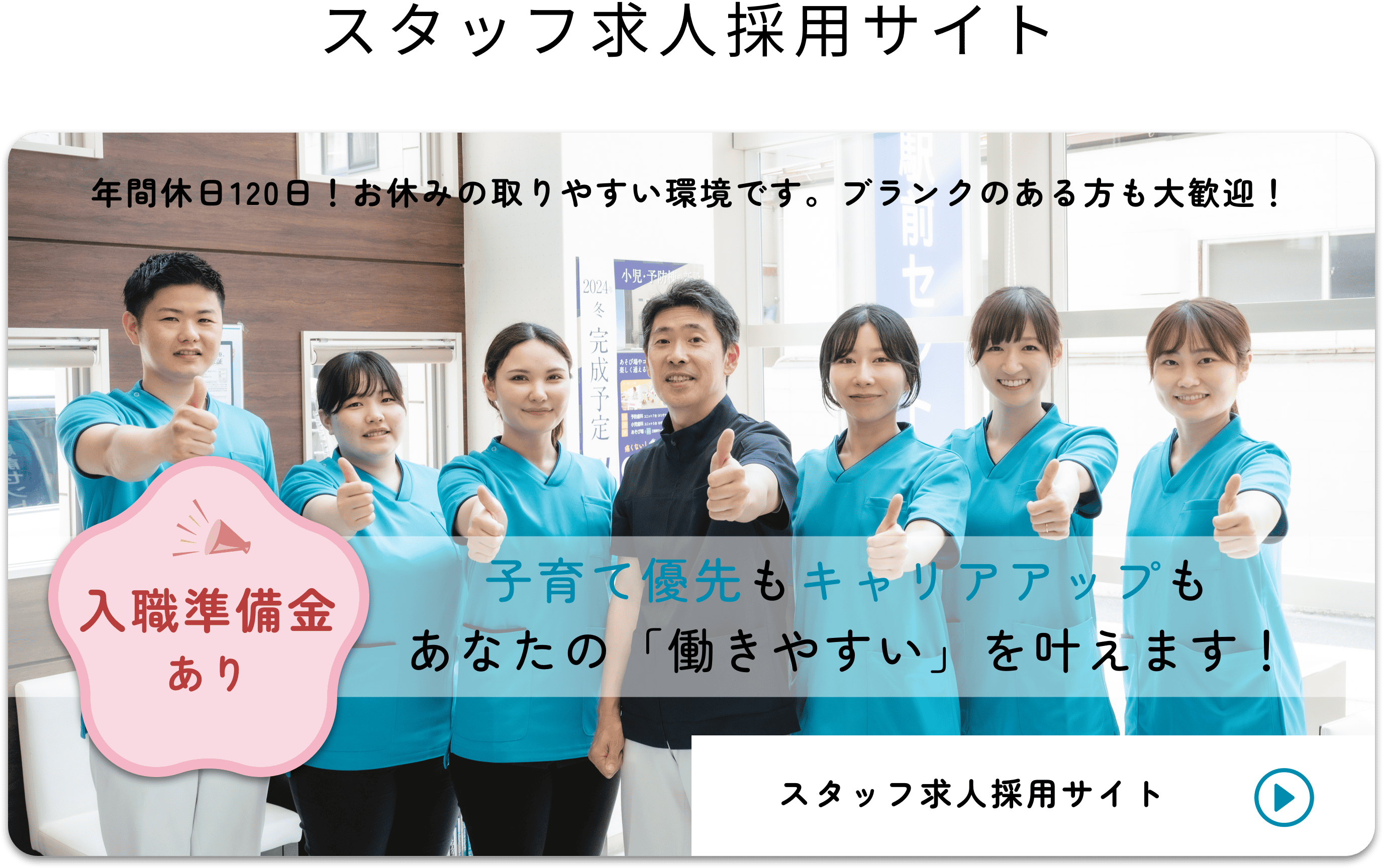 地域の皆さまとともに、『楽しく人生100年』を目指す医院として、皆さまを全力でサポートいたします。