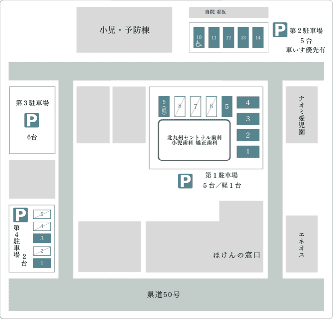 (専用駐車場が満車の場合は、ウェル戸畑さんかイオン戸畑さんに駐車していただくようお願いいたします。治療時間中の駐車料金を負担いたします。)