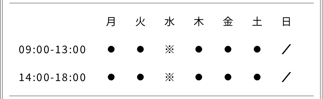 ※祝日のある週の水曜日は診療いたします